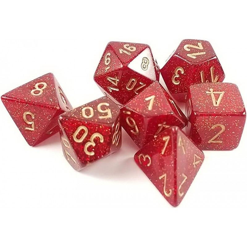 Bonito set de dados, incluye 7 dados: 4 caras, 6 caras, 8 caras, 10 caras y otro con decenas para poder lanzar porcentajes, 12 caras y 20 caras.