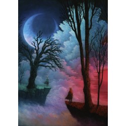 Las pinturas de Andy Kehoe son narrativas poéticas. Sus maravillosos seres en su mundo de sueños están tan cerca y, sin embargo, no pueden (todavía) unirse.