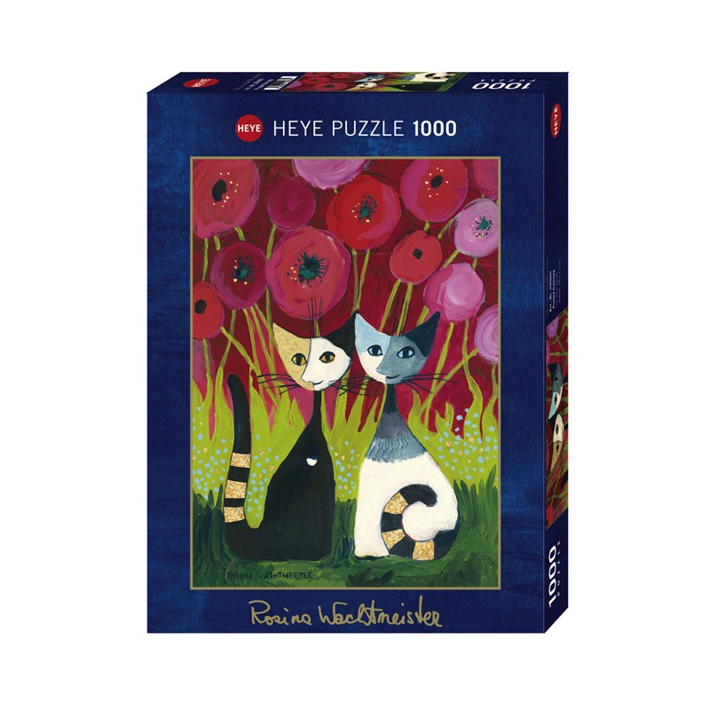 Ahí están, los populares gatos de Rosina Wachtmeister, bajo un cielo rojo de amapolas. Como siempre, los colores y formas claras dan como resultado un exquisito rompecabezas a disfrutar.