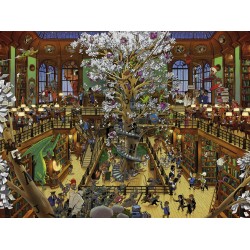 Lo que crece en medio esta noble biblioteca , poblada por todo tipo de figuras literarias (a ver si las reconoces), es un árbol de libros puro: ¡definitivamente no falta cruzar ninguna t!