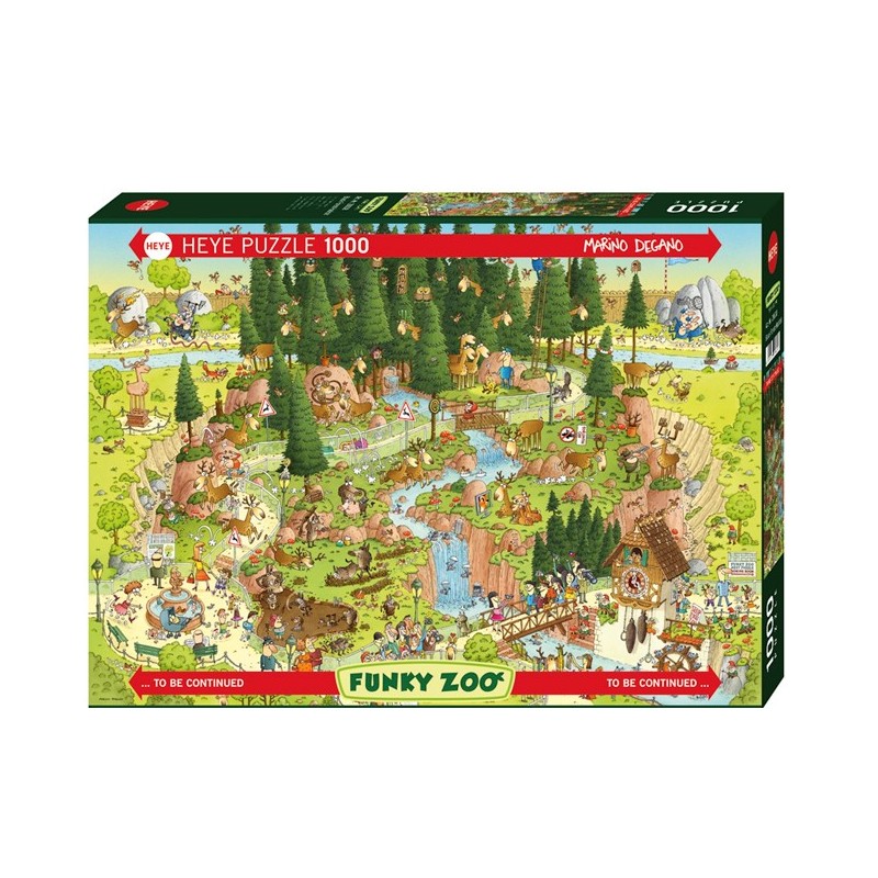 Para su obra maestra, un zoo poblado por todo tipo de alocados animales, el artista de dibujos animados Marino Degano ha pensado en algo muy especial: consta de varias partes que encajan tanto a la izquierda como a la derecha y así, se pueden colocar en la combinación que se quiera. ¡Con esta peculiaridad cada uno puede armar un zoológico personalizado!