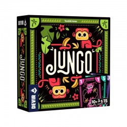 Jungo es un juego de cartas de construcción muy divertido. Tu objetivo es ser el primer jugador en deshacerse de todos los monetes. ¡No ordenes las cartas de tu mano! La baraja son 64 cartas, con 8 copias de cada una de 1-8, y tendréis una mano de cartas que no podréis reorganizar. El jugador inicial dirige una carta o un conjunto de cartas del mismo valor, pero sólo puede jugar varias cartas si están juntas en su mano. Si se han jugado cartas, para jugar hay que jugar el mismo número de cartas con un valor más alto o un conjunto de cartas más alto. Si ganas a alguien, puedes coger las cartas que le ganaste y colocarlas a tu mano en el sitio que quieras, o puedes descartarlas. Si no puedes o decides no jugar, tienes que pasar y robar una carta del montón boca abajo; cada carta tiene dos valores en ella. Puedes añadir la carta donde quieras, descartarla o invocar a la “ley del jungo” y jugarla inmediatamente como parte de una combinación de tu mano que supere lo que hay en la mesa.