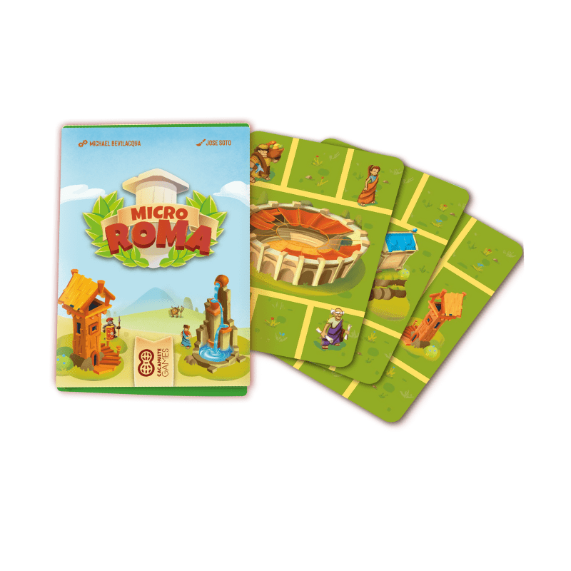 En Micro Roma, agregarás territorios a tu imperio y aumentarás tu fama combinando los distintos edificios. ¡Prepárate para combatir a los bárbaros y ser el próximo César! Para ello deberás construir Roma y desarrollar el imperio jugando cartas para obtener la puntuación más alta cuando se construya el Coliseo.
