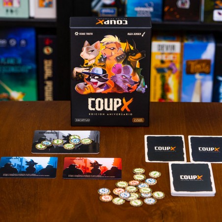 En Coup deberás eliminar a los demás utilizando sabiamente las habilidades de tus cartas (o mentir utilizando habilidades de personajes que no tienes). Parece fácil pero... ¡cuidado! Si te desafían y has mentido perderás tu carta. Ganará la última persona que sobreviva con al menos una de sus cartas.