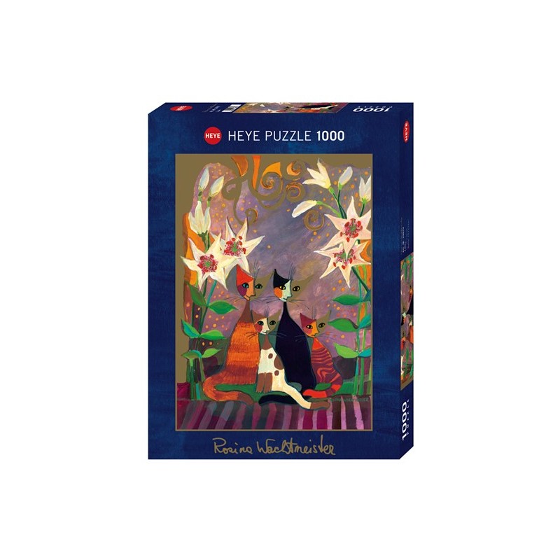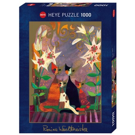 Rosina Wachtmeister decora la foto grupal de su adorable familia de gatos con magníficas flores y así le da un entorno apropiado.