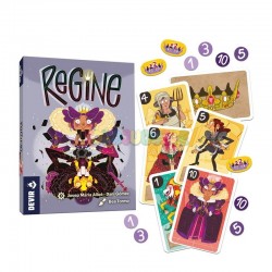 Vigilad vuestras espaldas… ¡Porque los puñales vuelan! En Regine la interacción entre los jugadores es constante, ya que la mayoría de los efectos de las cartas actúan sobre la mano de los rivales. A lo largo de la partida, cada jugador buscará la mejor combinación para puntuar, pero no siempre tendrá el control sobre sus cartas.