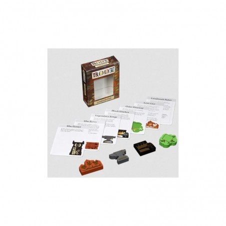 Root: Lugares Míticos es una expansión del juego de mesa Root en el que podrás añadir lugares míticos con distintos poderes, los cuales darán más vida al Bosque. Integra cuatro lugares distintos gracias a los iconos de madera serigrafiados junto a sus cartas de habilidad. Intercambia productos del Mercado Negro, encuentra amigos en la Ciudad Perdida, crea obras maestras en la Forja Legendaria y siéntate en el trono de la copa del árbol anciano. Es necesario contar con el juego básico para disfrutar de esta expansión.