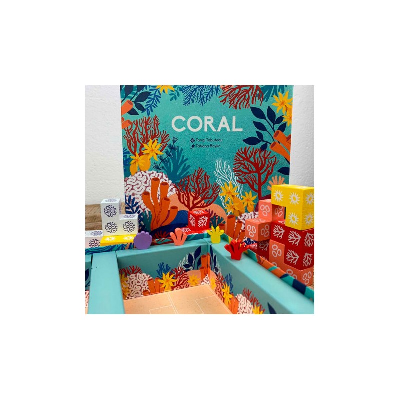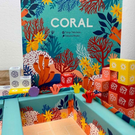 En cada turno, decides si añadir una pieza de coral al arrecife o mover tu ficha, buscando el lugar perfecto para que tu especie crezca aún más. Así, cooperando y compitiendo, construirán una estructura 3D frágil pero magnífica, similar a un arrecife de coral que crece y vive en una armonía compleja. Al final del juego, el ganador será quien tenga más íconos de su especie visibles al observar el arrecife desde arriba.