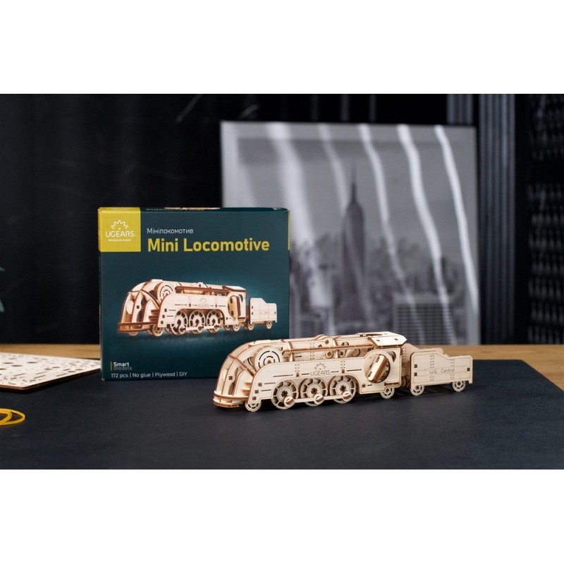 A lo largo de los años, Ugears ha diseñado varias maravillosas y exigentes maquetas de tren, como la Locomotora de Vapor, la Locomotora de Vapor V-Express con Ténder y el Expreso de Hogwarts™. Con la Mini Locomotora le ofrecemos ahora una maqueta de tren para montar del nivel de dificultad "Fácil" que todo el mundo es capaz de montar, incluso las y los jóvenes entusiastas de trenes. Este tren de madera (locomotora más ténder) propulsado por cintas de goma esconde en su compacto cuerpo una energía sorprendente, y después de darle cuerda es capaz de recorrer más de 2 m. El elegante estilo retro evoca los años 30 del siglo pasado — la última década en la que las locomotoras de vapor a carbón fueron predominantes.