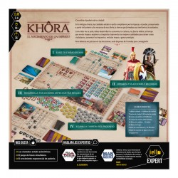 ¿Estás preparado para alzar una civilización cuyo resplandor alumbre al mundo antiguo? En Khora tomas las riendas del gobierno de una ciudad estado de la Grecia clásica y a lo largo de nueve rondas deberás desarrollar su política, su comercio, su cultura, su economía y su poder militar. Lidera tu pueblo con sabiduría en una Odisea única para sumar el mayor número de puntos de gloria y álzate con los laureles de la victoria.