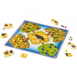 Juego cooperativo para dos o más jugadores de 3 años en adelante . Sólo una cosecha rápida de los árboles que llevan crujientes cerezas, jugosas manzanas, peras dulces y maravillosas ciruelas evita que el cuervo insaciable e insaciable chupe los frutos. Todos los jugadores trabajan juntos para cosechar los frutos.
