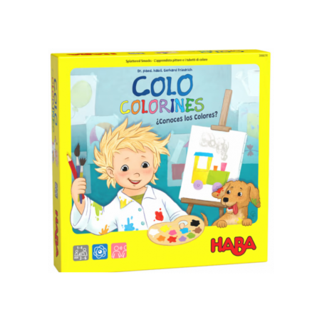 - Contenido: 1 figura Colo, 1 tablero en forma de puzzle, 45 cartas ilustradas, 4 tableros de depósito, 40 manchas de colores, 1 instrucciones del juego.