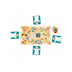 Klecks pinta unos magníficos cuadros de colores. Pero, para ello, nuestro pequeño artista necesita manchas de pintura. El juego consiste en avanzar de bote en bote destapando las cartas y mencionando los colores para así acumular manchas de pintura. Pero, ¡cuidado! A Toffy, el perro de Klecks, le encanta llevarse los pinceles. Gana quien primero consiga colocar siete manchas en su bata. Un juego ideal para que los pequeños aprendan los colores de forma lúdica, fomentando la expresión oral y el vocabulario. Con variante cooperativa: todos/as juegan juntos/as