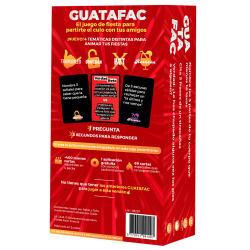 En GUATAFAC : El Punto G, tienes 8 segundos para descubrir los pensamientos más profundos de tus amigos, familiares o incluso extraños. Podrás encontrar 480 cartas con diferentes categorías como: tranquileo, confesión, hot y resacón, además de “Verdad vs Reto” o “El friki”.