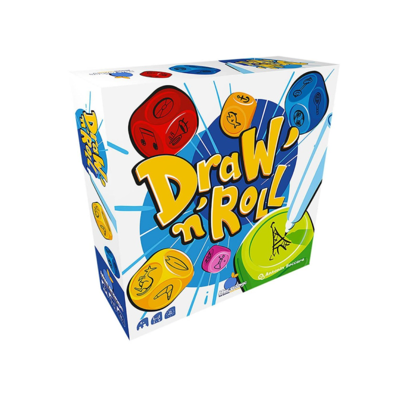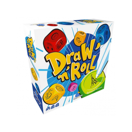 En Draw n Roll los jugadores compiten para adivinar la respuesta oculta de cada jugador, interpretando las imágenes dibujadas en las caras de los dados y deduciendo lo que el collage podría significar.