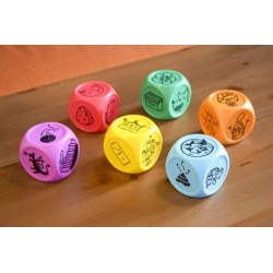Cada jugador elige por turnos un tema y dibuja una imagen en cada dado relacionada con ese tema en particular, por ejemplo, dibujar un plato de espaguetis, un pastel y un huevo en un dado para indicar la comida, antes de tirar los dados.