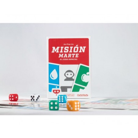 Misión Marte es un juego familiar, rápido y con el que jugarás una partida tras otra. Dinamismo y diversión para todos los públicos con dados y cartas.