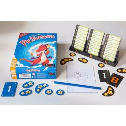 ¡Llega Pictomania, el juego de dibujo y adivinanzas que pone a prueba tu rapidez y creatividad! Sin tiempo para detalles, dibuja rápidamente y adivina lo que los demás están creando. Esta segunda edición trae tarjetas renovadas y una dinámica ágil: con solo tres cartas de palabras en juego, cada ronda es un desafío veloz y emocionante. Ideal para cualquier número de jugadores, Pictomania promete risas y diversión asegurada, ¡donde cada trazo cuenta! Prepárate para preguntarte: ¿Es un alce o un reno? ¿Un pegaso o un unicornio? Descúbrelo en Pictomania.